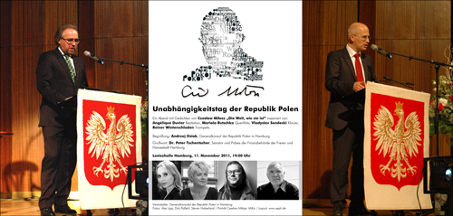 Für Polen ist der 11. 11. ein Nationalfeiertag, und im Jahre 2011 ist es der 93. Jahrestag der Unabhängigkeit der Republik Polen – wieder ein Anlass für die in Hamburg lebenden Polen und für die Hamburger, diesen Tag gemeinsam in der Kleinen Laeiszhalle festlich zu begehen.